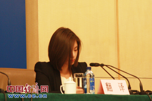 十二屆全國人大一次會(huì )議新聞中心3月14日(星期四)下午3時(shí)在梅地亞中心多功能廳舉行主題為“醫藥衛生體制改革”的記者會(huì )。圖為記者會(huì )女翻譯。中國經(jīng)濟網(wǎng) 秦宇雯 攝影
